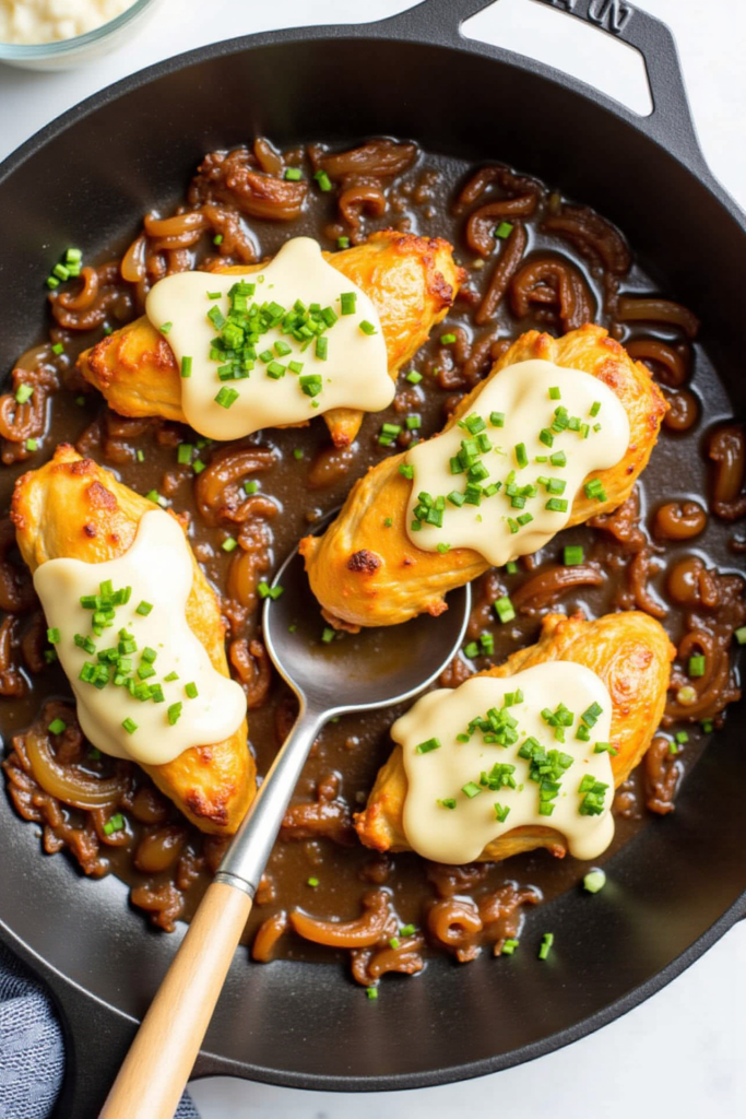 Serve French Onion Chicken with crusty baguette slices or creamy mashed potatoes to soak up the sauce and caramelized onions. Pair with a simple green salad dressed in a tangy vinaigrette for a balanced autumn meal. For Halloween dinner parties, consider serving in mini cast iron skillets for a festive and elegant touch.