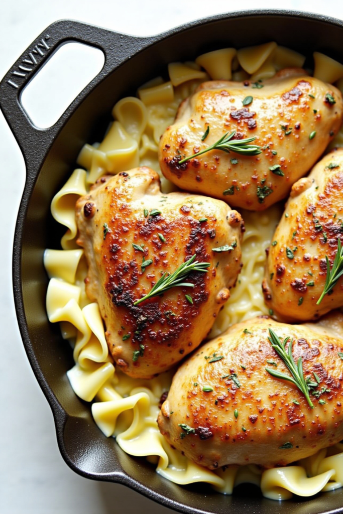 For best results, use boneless, skinless chicken thighs or breasts, and be sure to sear them well before adding the noodles. This develops flavor and helps lock in moisture. When making the noodles, opt for wide egg noodles—they absorb the buttery sauce beautifully and remain tender without getting mushy. Stir in the butter and fresh herbs at the end for a burst of freshness and aroma.