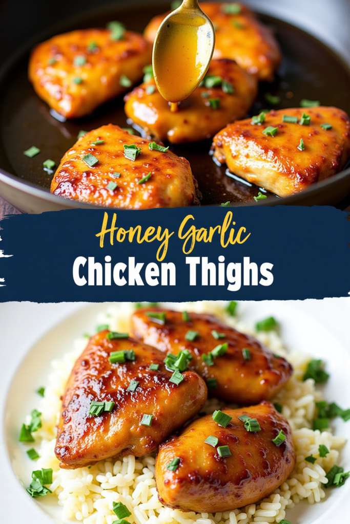 Honey Garlic Chicken Thighs pair perfectly with fluffy steamed rice, roasted vegetables, or a crisp green salad. Spoon extra sauce over the top for maximum flavor, and serve with lemon wedges for a bright, zesty contrast. Leftovers reheat beautifully, making this a meal you’ll want to make again and again.