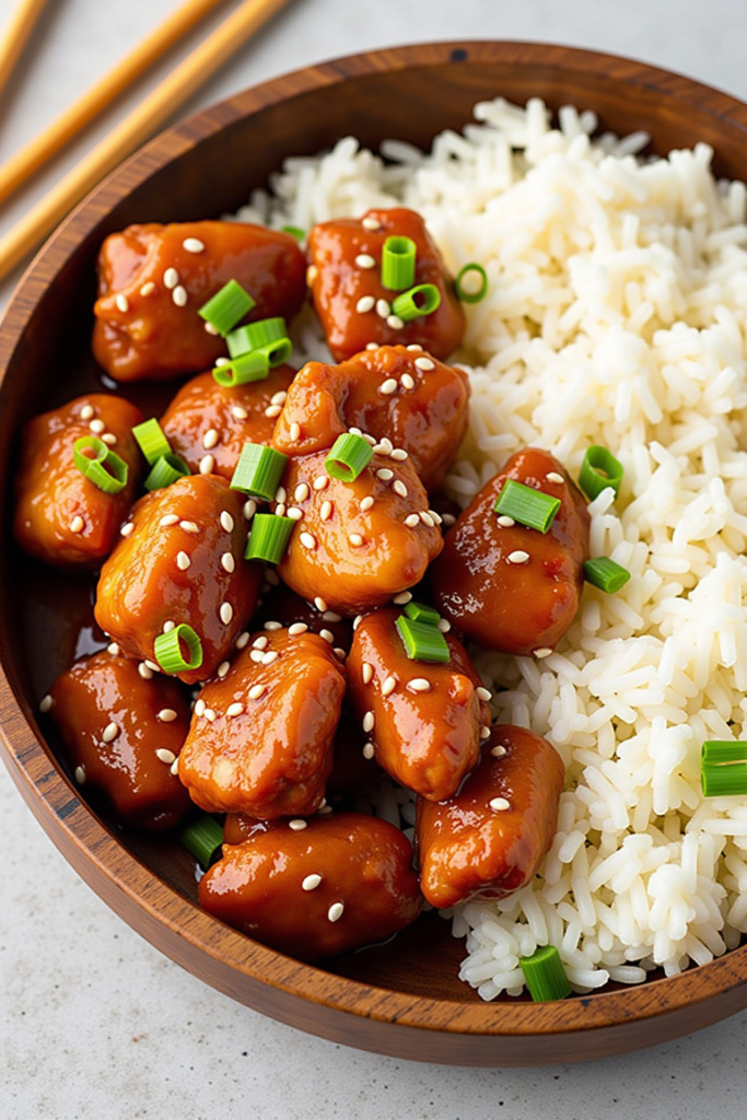 Whether using boneless skinless chicken thighs or breast, dice the meat into bite-sized pieces for even cooking and maximum flavor coverage. Sear over medium-high heat to lock in juiciness, then add the sauce and simmer until sticky and glossy. Serve over steamed rice or noodles, and garnish with sesame seeds and green onions for a restaurant-worthy presentation.